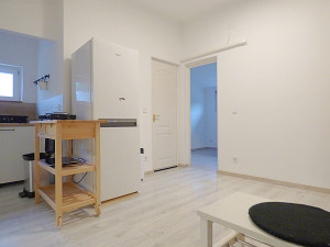 Részben bútorozott. Hűtő, mosógép, szárítógép van.