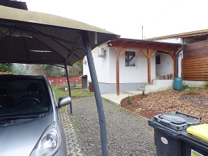 Elektromos kapu, fedett udvari autóbeálló és külső parkoló.