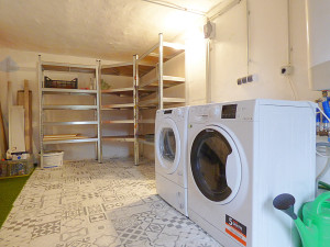 A ház alagsorában mosókonyha, valamint Salgó polcos tároló van.